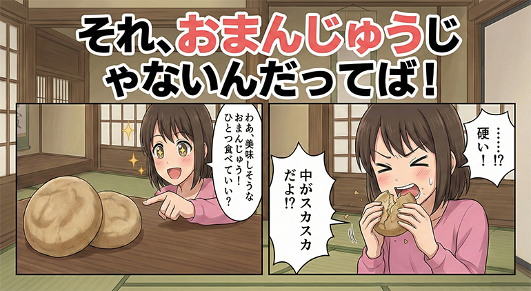 まんじゅうのような丸い姿に油断して、友人はひと口「ガリッ」。その硬さに驚きつつ、数分後に…
