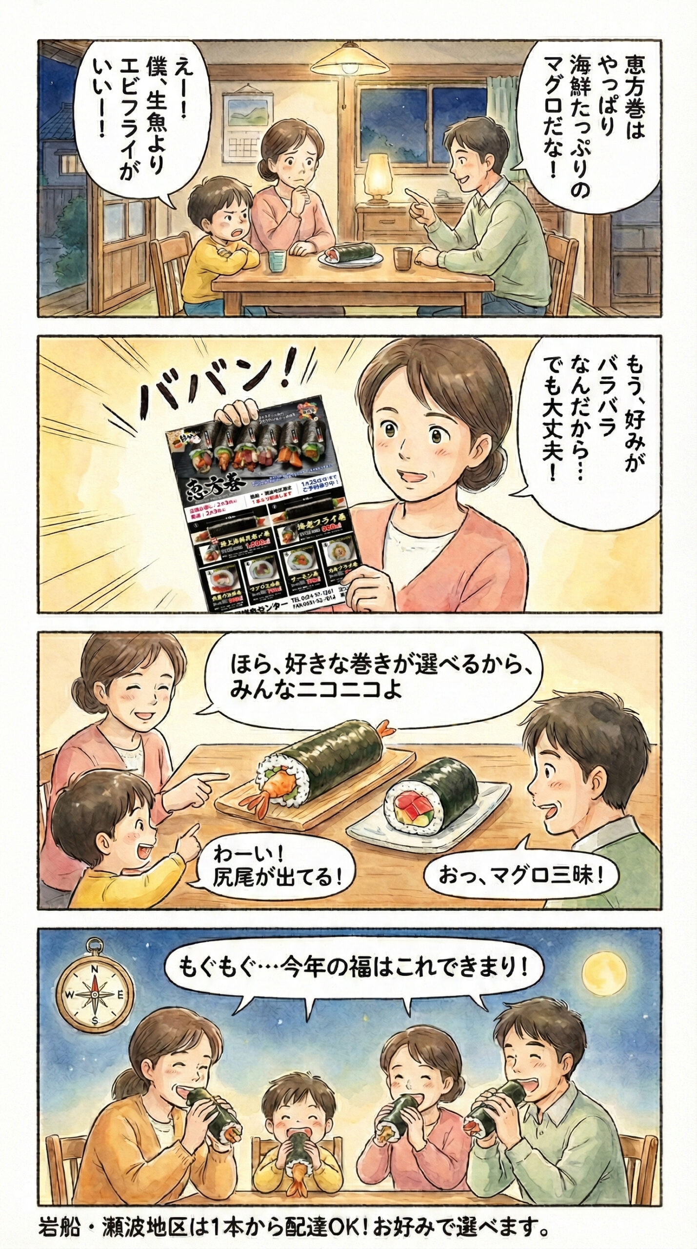 マグロ派もエビフライ派も、みんなまとめて福まるかじり Published 2026年1月18日 at 1429 × 2560 in 「マグロ派もエビフライ派も、みんなまとめて福まるかじり」の巻 ← Previous