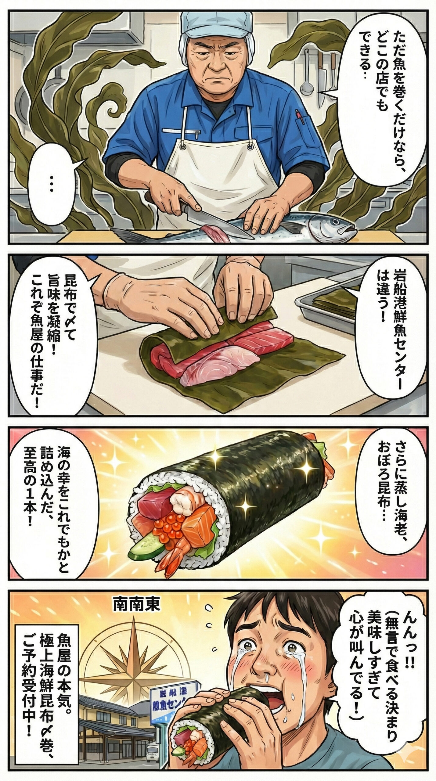「魚屋の魂、一本に凝縮。極上海鮮昆布〆巻」の巻